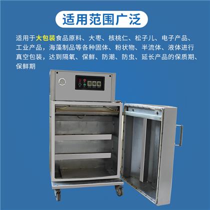 立柜式真空包裝機(jī)采用優(yōu)良不銹鋼材料結(jié)構(gòu),主要用于粉末、顆粒、半流體或大包裝物體的真空包裝。該機(jī)型真空室容積大,袋口立封形式。可連同產(chǎn)品外包裝(如:箱、桶、盒)。直接擱置于真空室內(nèi),抽真空,封口,冷卻,放氣,全過程均可自動(dòng)控制及完成。開門式的操作形式,便于重物擱置。(該型機(jī)可根據(jù)用戶特殊尺寸、配置要求定做)。
