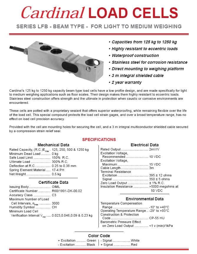 | 產(chǎn)品名稱:Cardinal LFB 稱重傳感器(laod cells) |