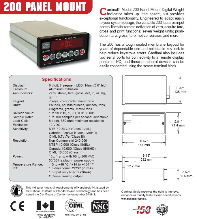 | 產(chǎn)品名稱:Cardinal 200 稱重顯示儀表(indicator) |