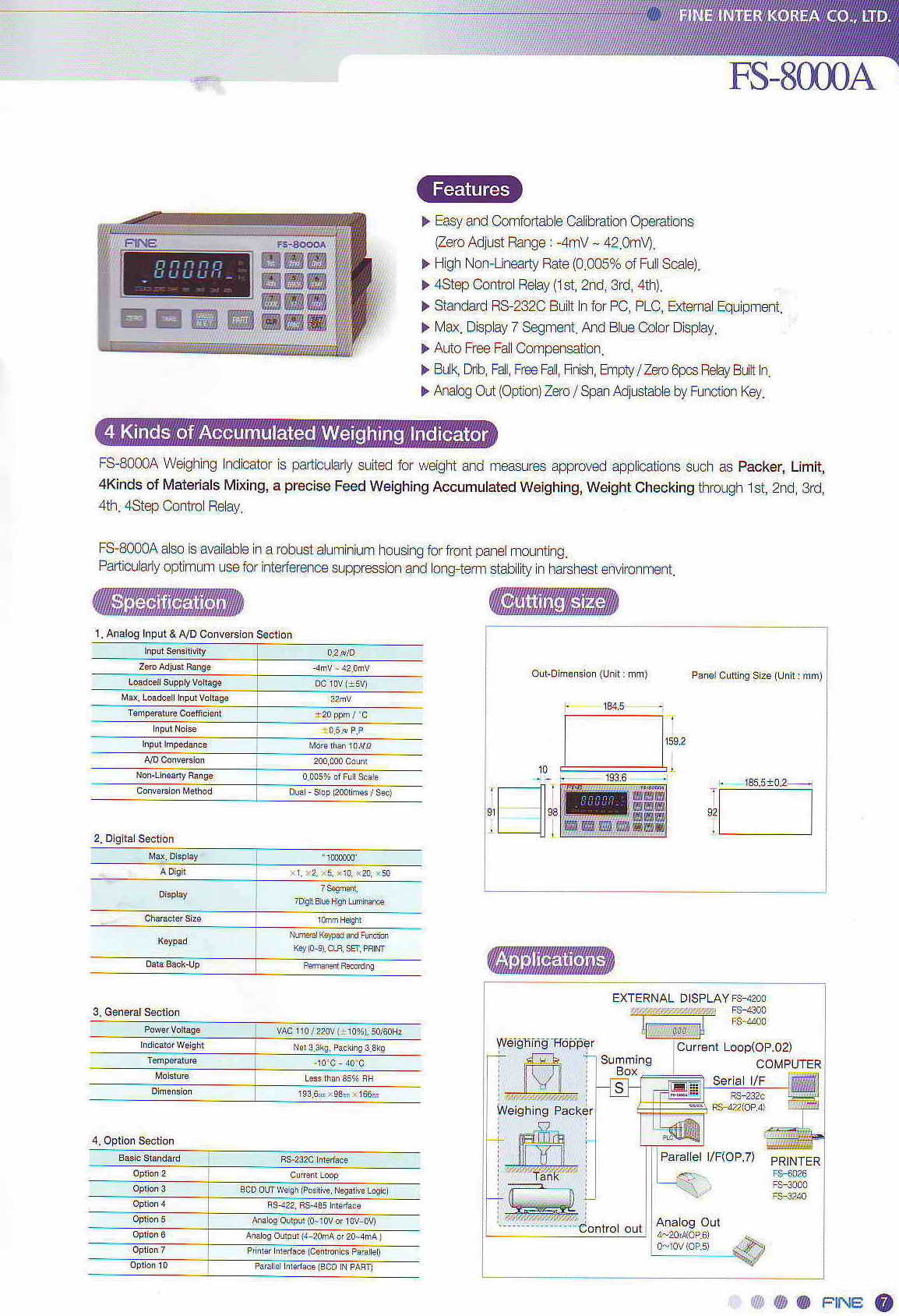 產(chǎn)品名稱:韓國Fine稱重顯示儀表,稱重顯示儀表FS-8000,顯示儀表FS-8000,F(xiàn)S-8000