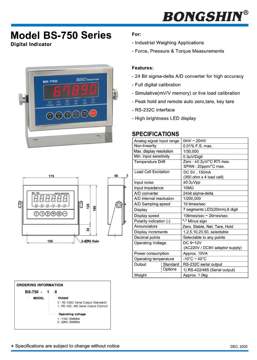 | 產(chǎn)品名稱(chēng):BS-750 顯示儀表(digital indicator) |