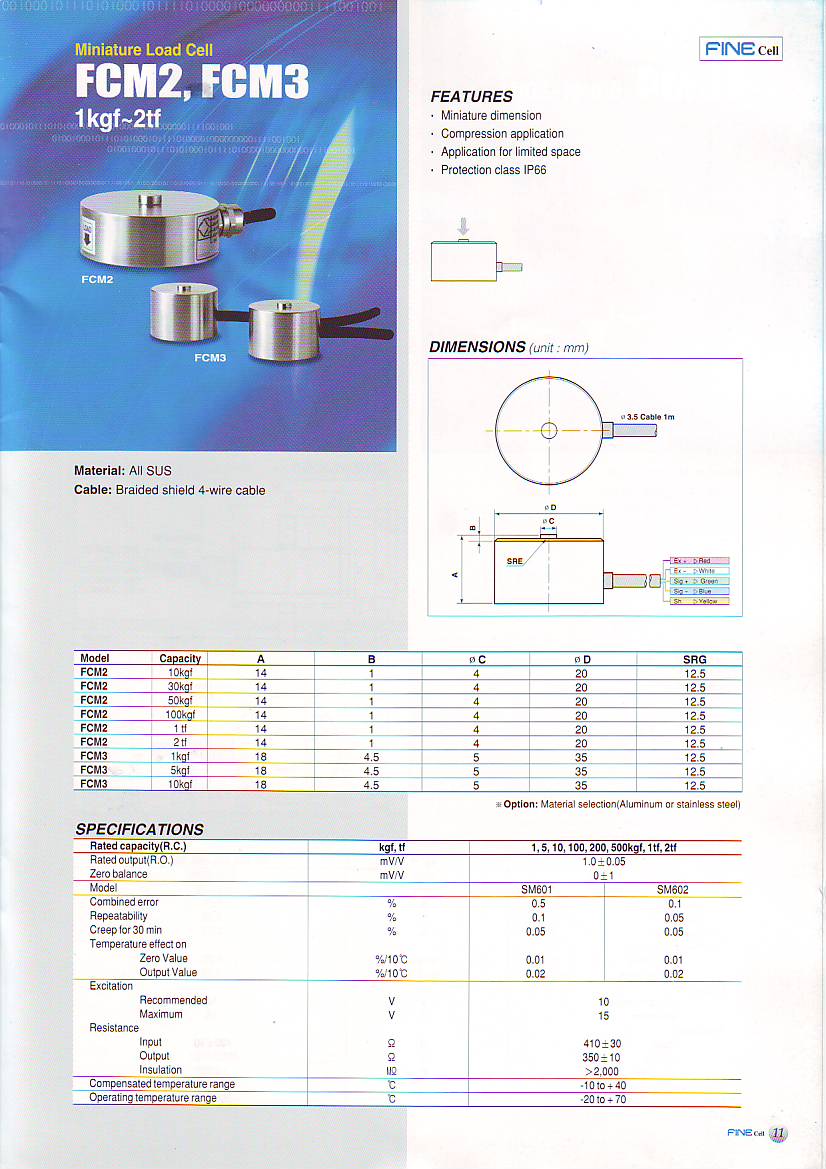 | 產(chǎn)品名稱:Fine FCM2 FCM3稱重傳感器(load cells) |