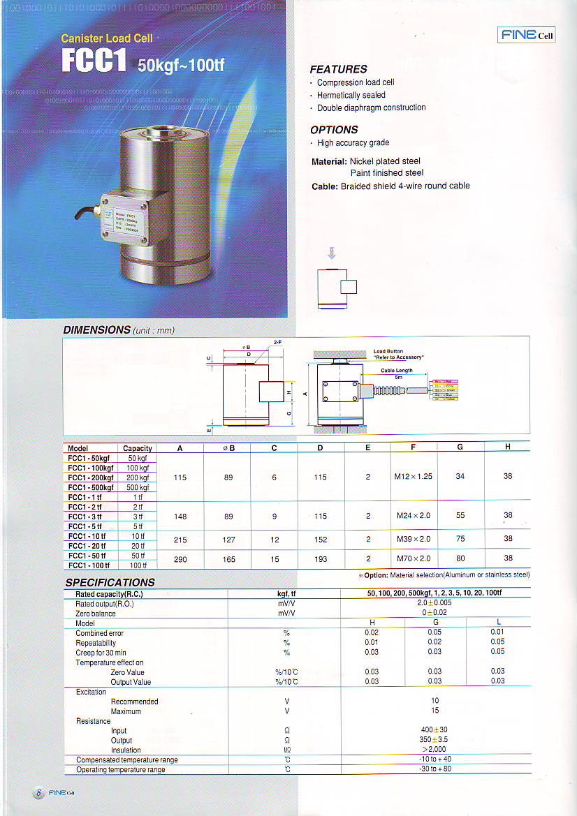 | 產(chǎn)品名稱:Fine FCC1 柱式稱重傳感器(load cells) |