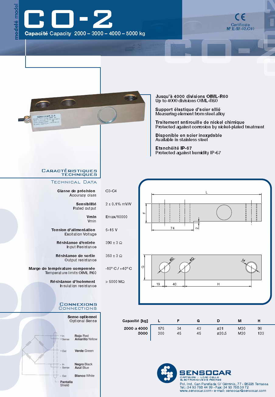 | 產(chǎn)品名稱:Sensocar CO-2 懸臂梁式稱重傳感器(load cells) |