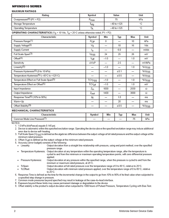 MPXM2010 氣壓傳感器(sensor)