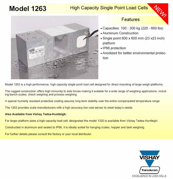 美國Tedea稱重傳感器,稱重傳感器1263-100KG,傳感器1263-100KG,1263-100KG,咨詢熱線:0755-26734156 型號:1263稱重傳感器