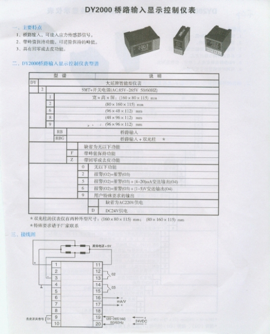 DY2000 橋路輸入顯示控制儀表(Indicator):
