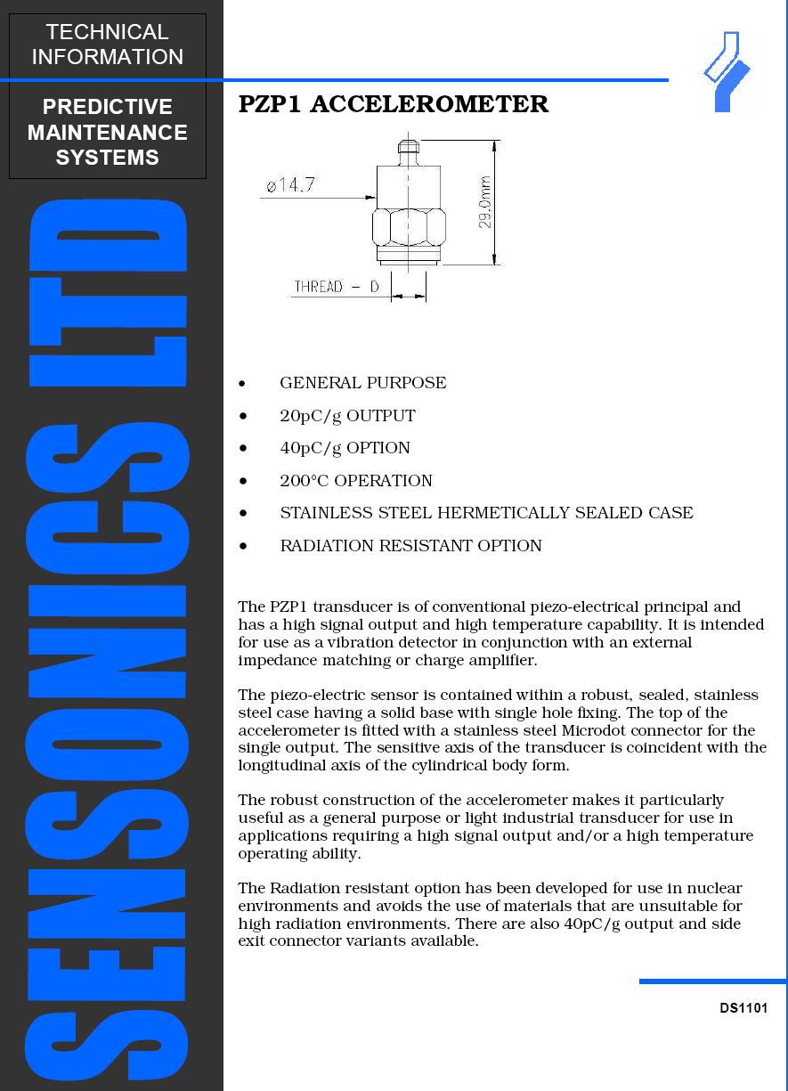 PZS1 / PZS2 / PZS3 / PZS4 / PZS5 Accelerometer